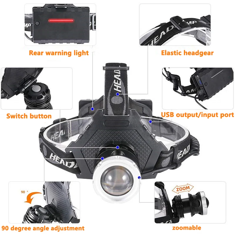 Z20 xhp90 8000 Lumen led Headlamp Fishing Camping headlight High Power lantern Head Lamp Zoomable USB Torches Flashlight 18650