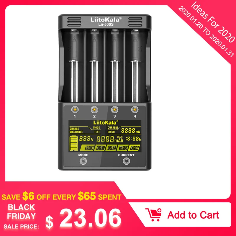 Best Seller LiitoKala lii-500S 18650 Battery Charger US/EU Plug LCD Screen Display Lithium/NiMH 26650 AAAAA Tou