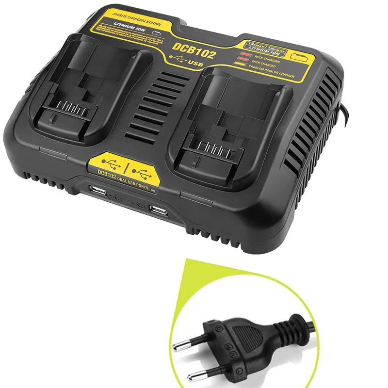 DCB102 Li-ion Battery Dual USB Port Charger fast charging For DeWalt 10.8V 12V 14.4V 18V 20V DCB101 DCB200 DCB140 DCB105 DCB200