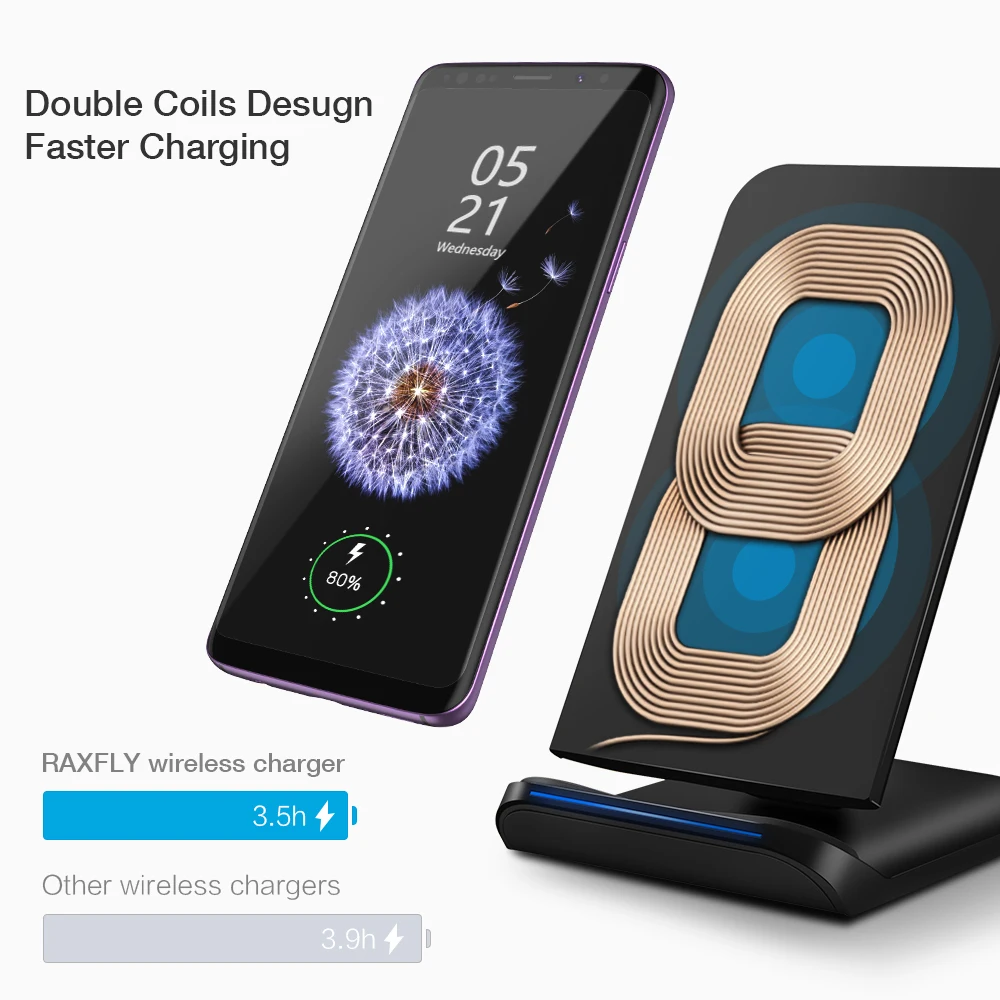 RAXFLY 10W Fast Wireless Charger For iPhone X XS Max XR Qi Wireless Charger For Samsung S9 S8 + Note 9 S7 Edge Charging Pad