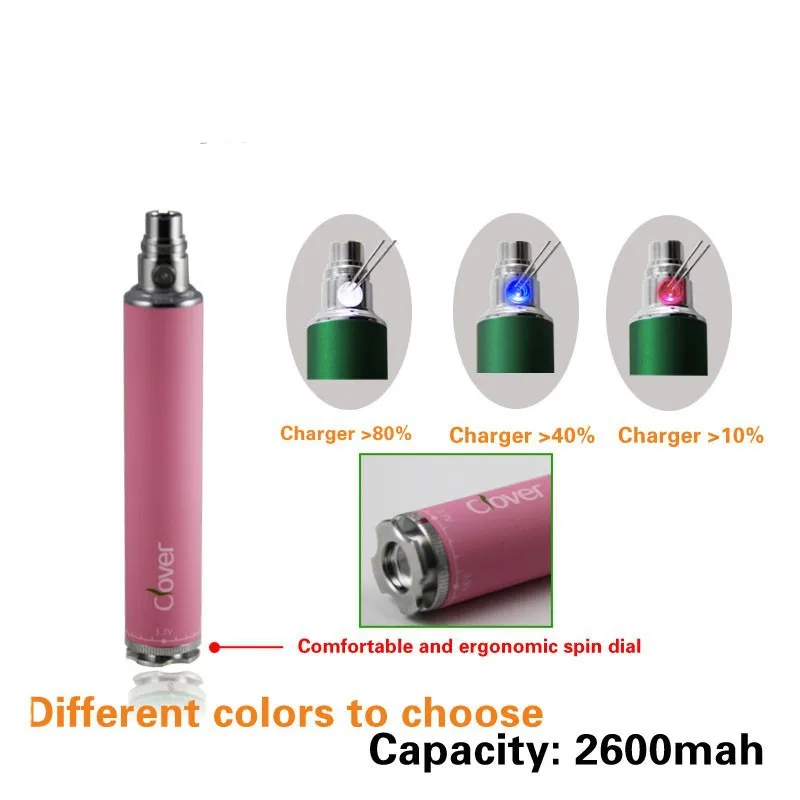 New Original e cigarette battery Clover 2600mAh USB Passthrough E Cigarette Battery Clover Root 510 thread