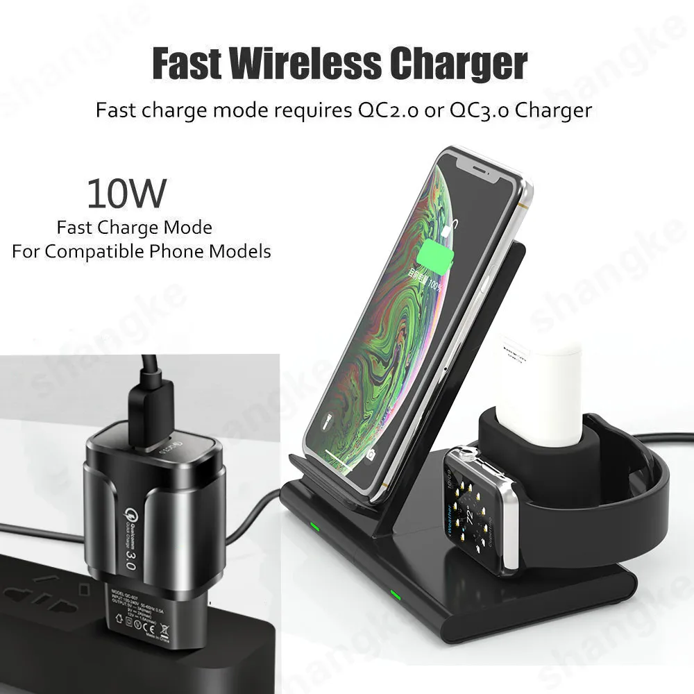 New Fast Charging 3 In 1 Qi Wireless Charger for Apple watch 1 2 3 4 Airpods For iPhone XS Max XR X 8 Plus Samsung S9 S8 Note 9