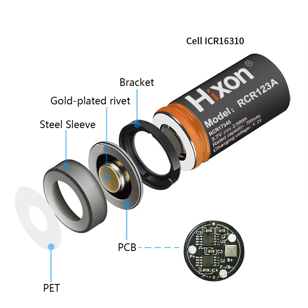 16pc 700mAh 3.7V RCR123A CR123A 16340 rechargeable battery for Arlo HD Cameras and Reolink Argus UL FCC Certified made by Hixon