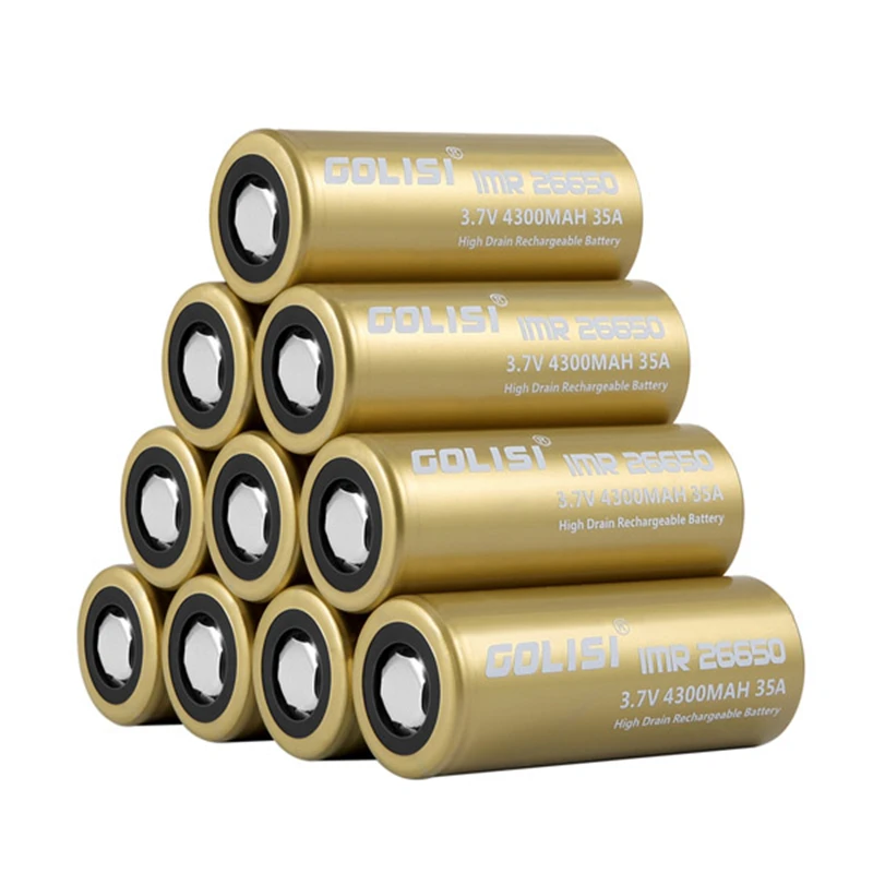 Hot Sale 6PCS GOLISI S43 IMR26650 4300mah 35A Protected Rechargeable Plate Head High-drain 26650 Battery