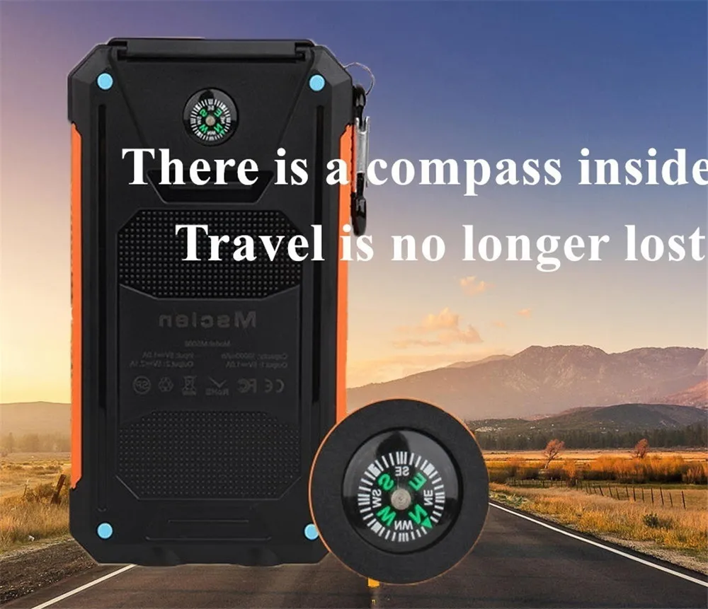 Solar Portable Waterproof Portable Power Bank 30000 MAh for All Smart Phone Battery Powerbank Fast Charging External Battery LED