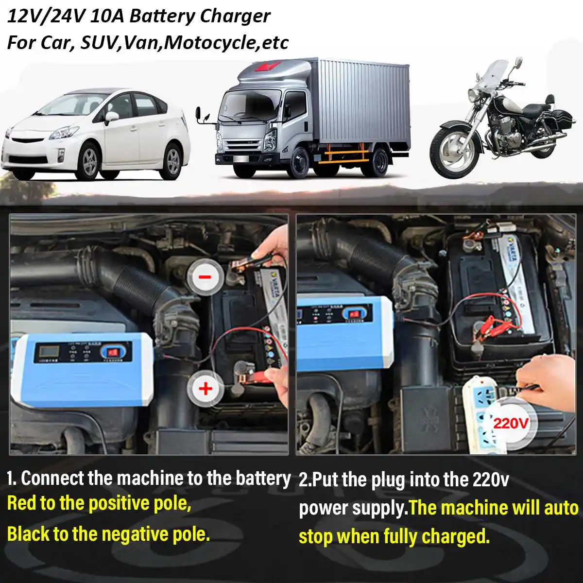 Big Promo Anti-overvoltage Protection European Standard 12/24V 10A LCD Digitals Display Portable Car Battery