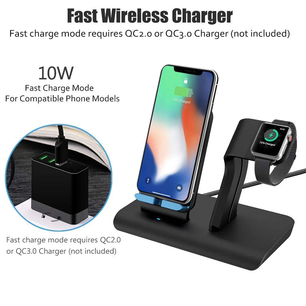DCAE Qi Wireless Charger Stand for Apple Watch 5 4 3 2 10W Fast Charging Station Dock for iPhone 11 Pro XS XR X 8 Samsung S10 S9
