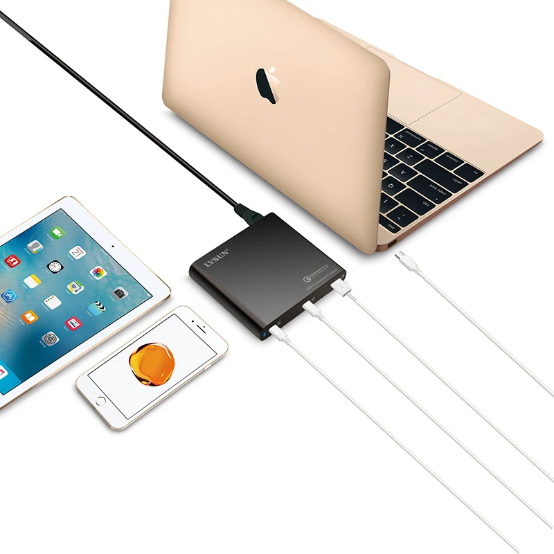 LVSUN QC 3.0 phone tablet laptop charger adapter type-c type c USB-C USB C charger for Macbook Spectre 13 Yoga 5 Dell Hp Xiao mi