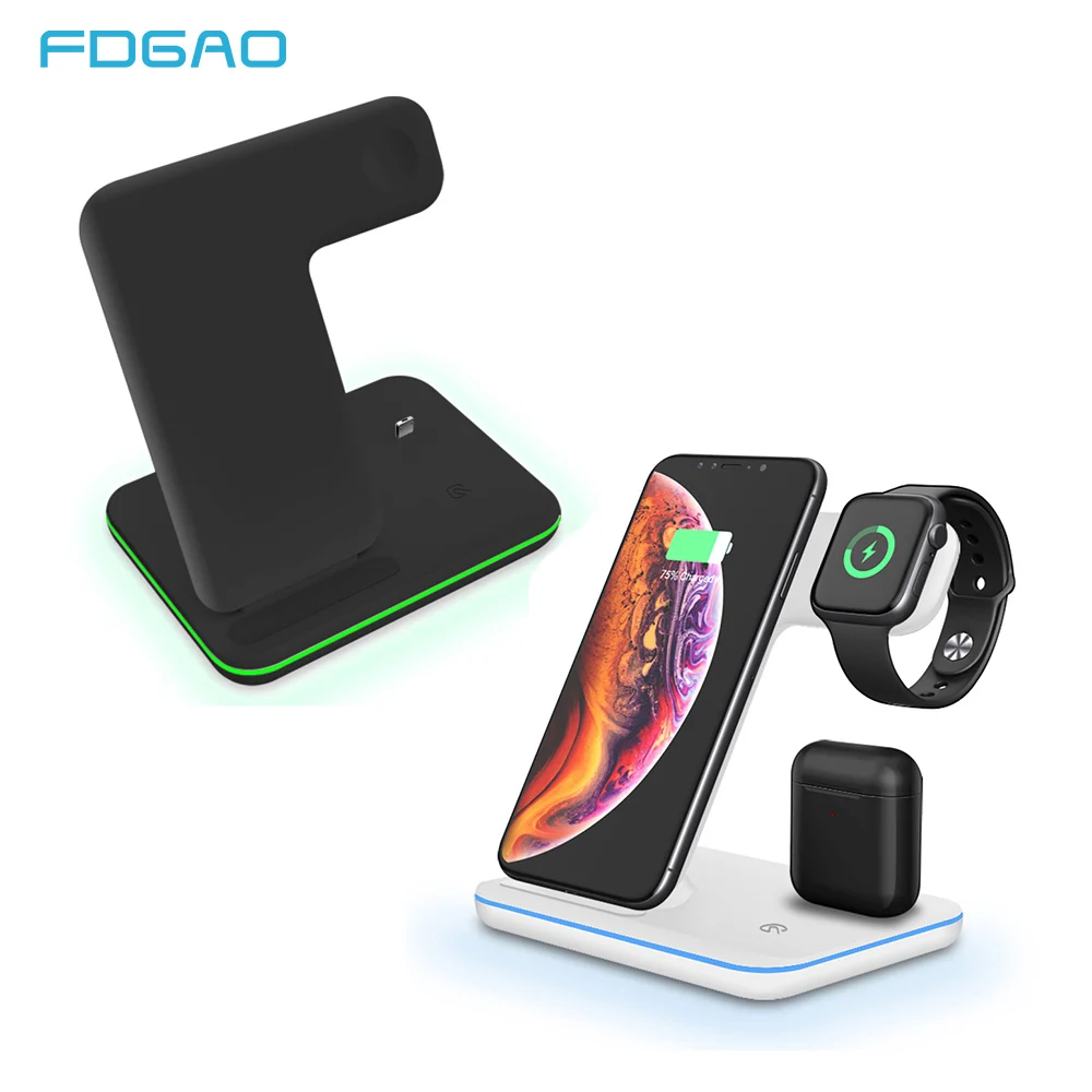 FDGAO 3 in 1 Fast 15W Qi Wireless Charger for Iphone 11 X XS XR 10W Quick Charge 3.0 Dock Stand For Apple Airpods Watch 4 3 2 1