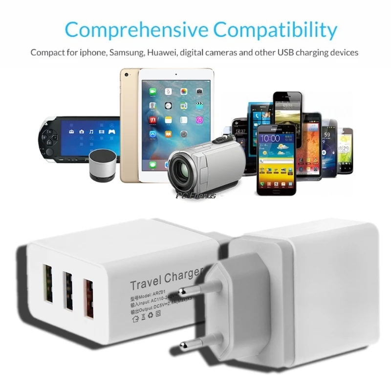 Buy Now 1 2 3 USB Port 5V 2.4A Travel Charger Power Adapter EU Plug For Phone Tablet PC