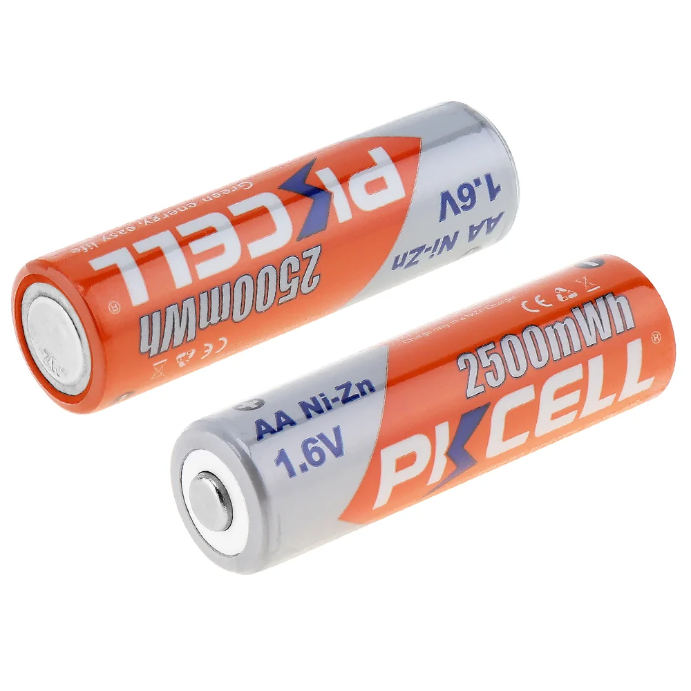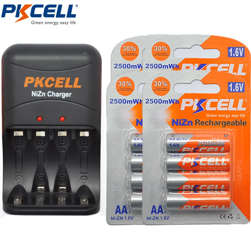 8Pcs/2Pack PKCELL NIZN AA Rechargeable Batteries NI-Zn 1.6V Volt 2500mWh AA Batteries +1Pcs AA/AAA NiZn Battery Charger