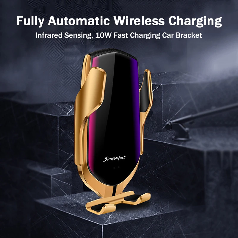 Hot Sale Car Wireless Charger Automatic Clamping Infrared Sensor Holder Fast Charging Car Phone Support 10W