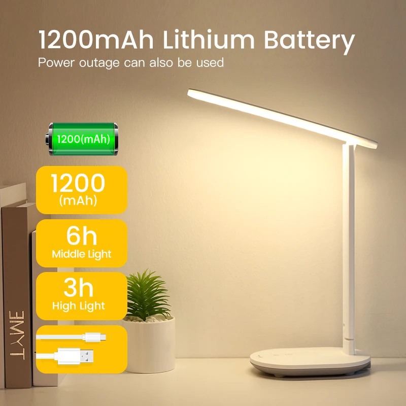 Warm Light Table Lamp Study 3 Colors Touch 1200mAh Rechargeable LED Reading Desk Lamp USB Table Light Flexo Lamps Table Dimming